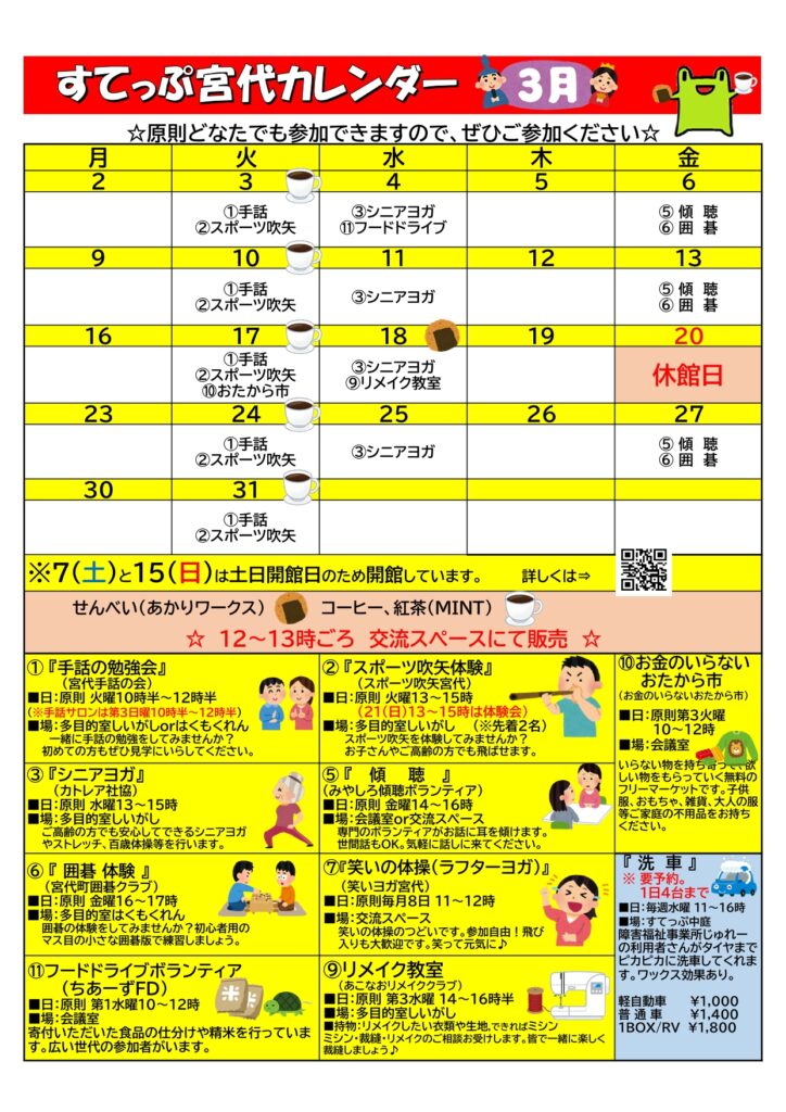 すてっぷ宮代カレンダー令和8年3月分です。